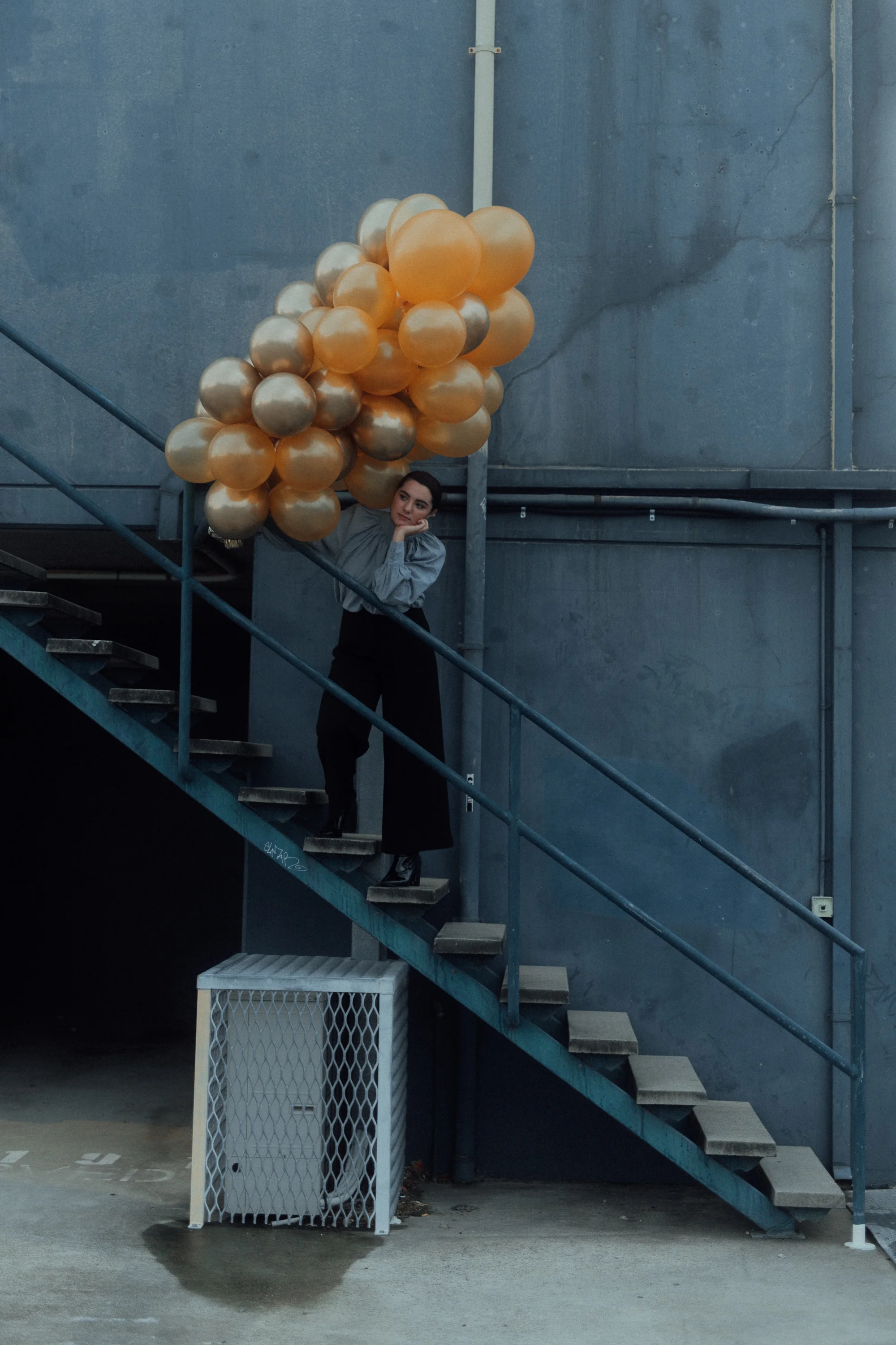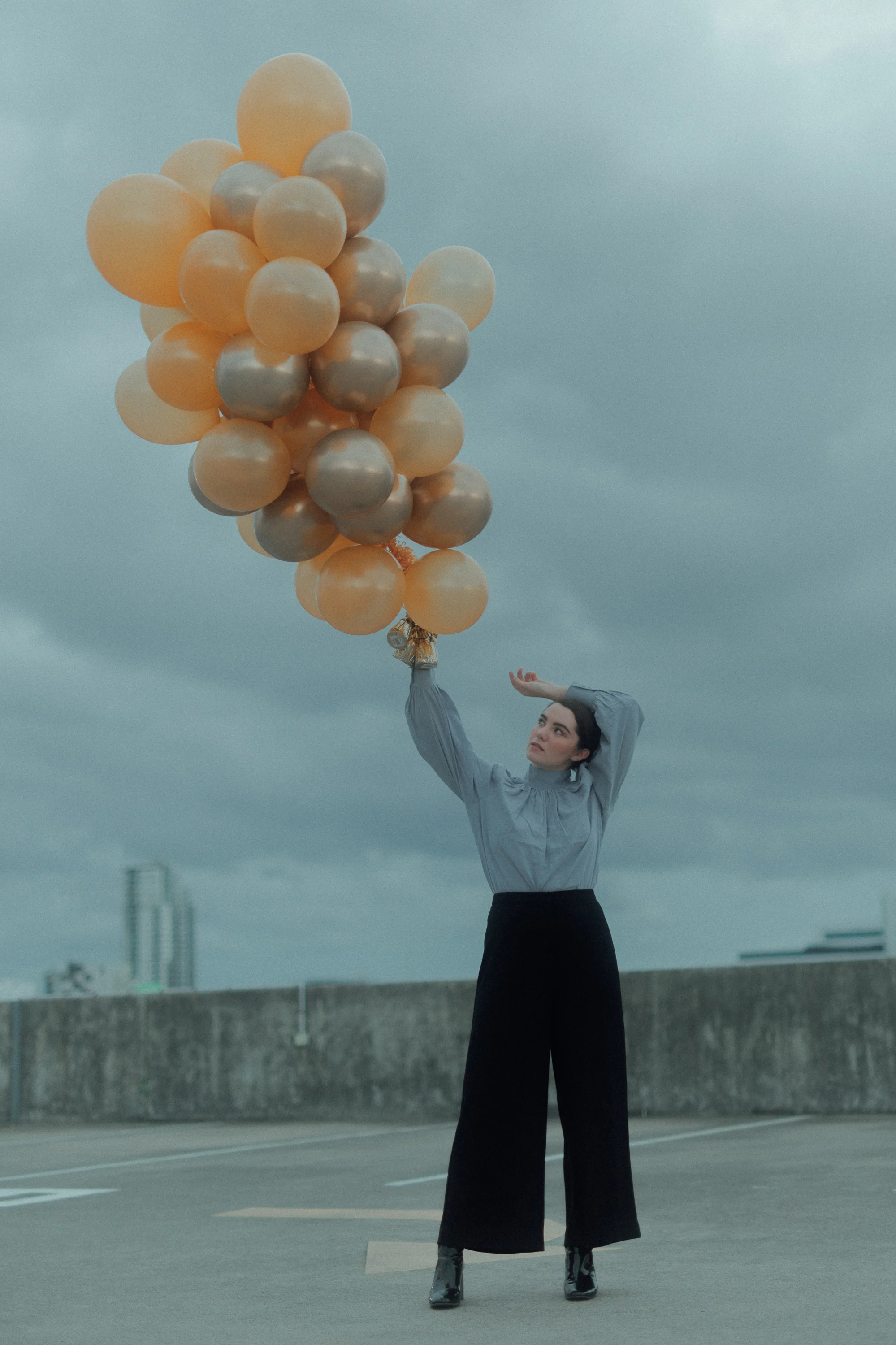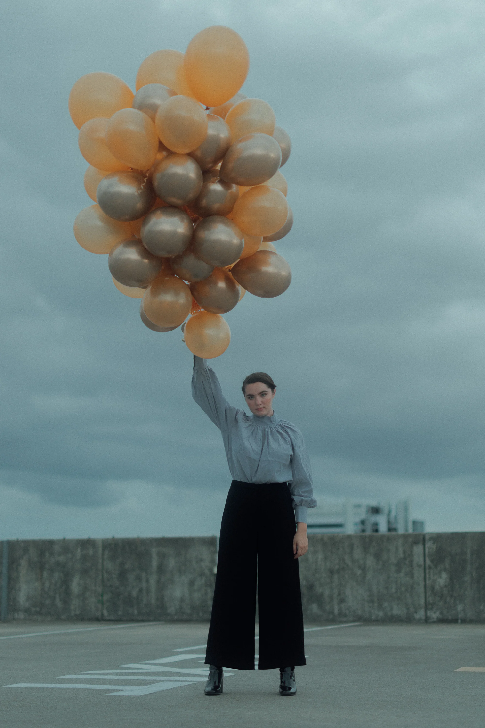 Recycled balloons. A carpark. A stormy afternoon. I can always count on Abby to be down for any weird / vague / last minute concept I come up with. Turns out helium balloons are an electrical risk at train stations, so prepare to have a few concerned station masters after you if this is the prop you’re travelling with.